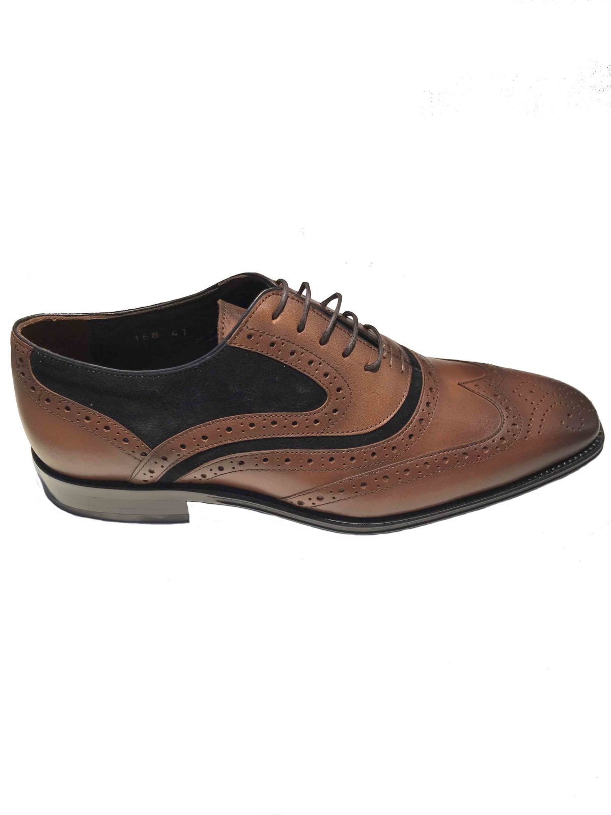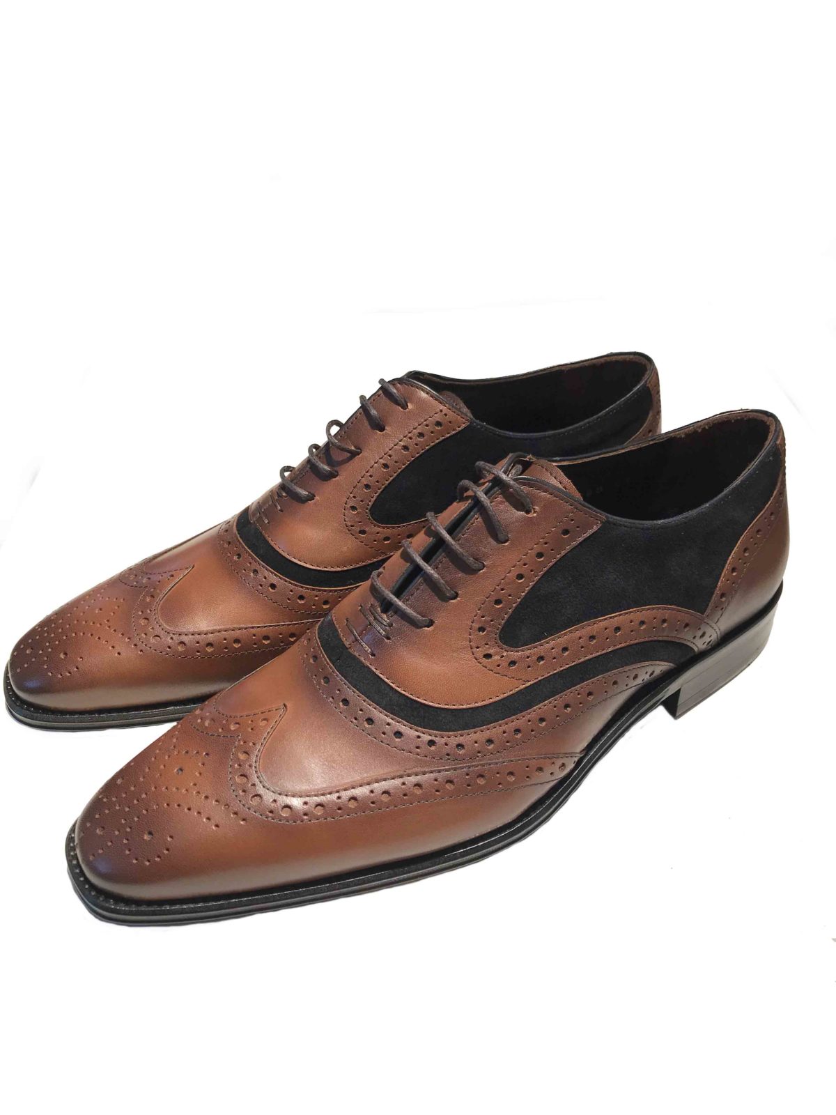 - Handmade brown leather shoe with details and black suede